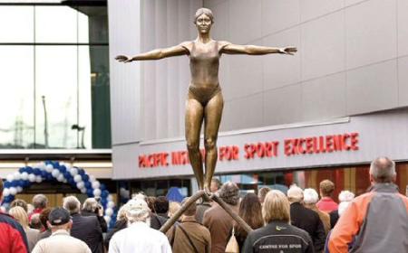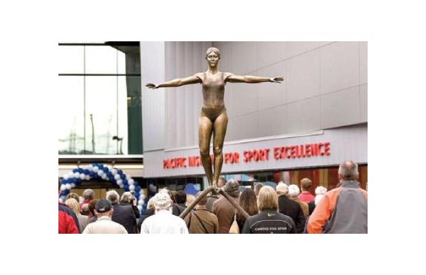 Price and Dixon pulled the cover from the $150,000 bronze statue Equilibrium, by local sculptor Armando Barbon, which greets athletes and visitors as they walk into the institute.